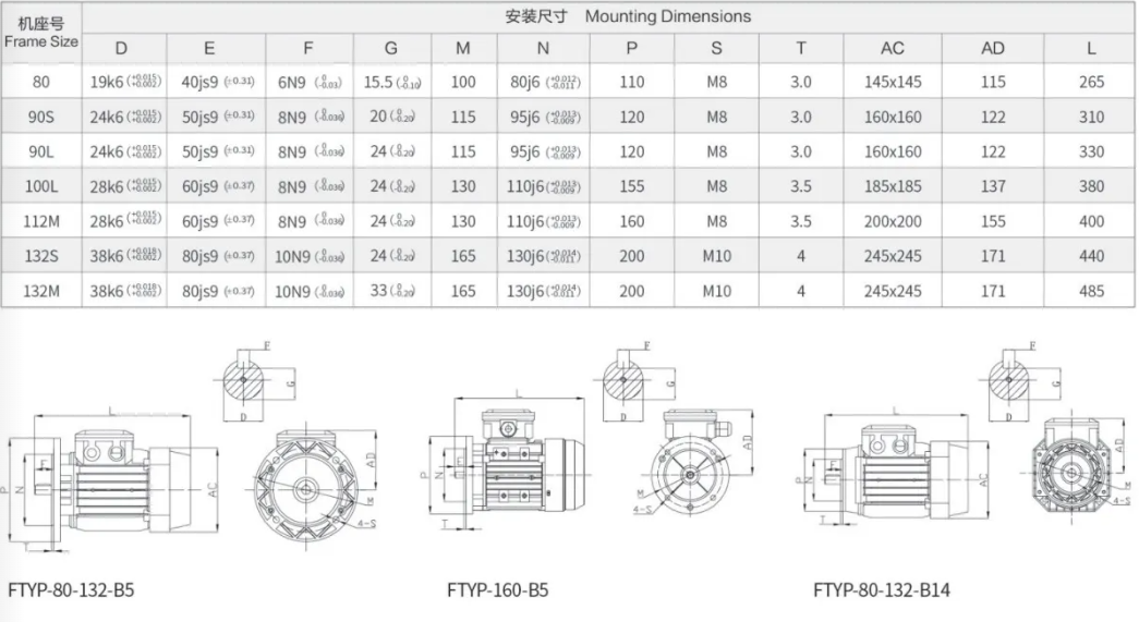 FTYP series B14 self-starting permanent magnet synchronous motor technical parameters