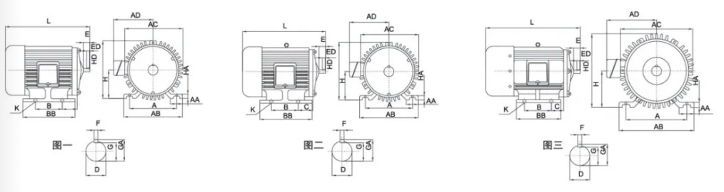 Phase Number | Drawing Number | A | AA | AB | AC | AD | B | BB | C | H | HA | HD | K | L | Shaft End |