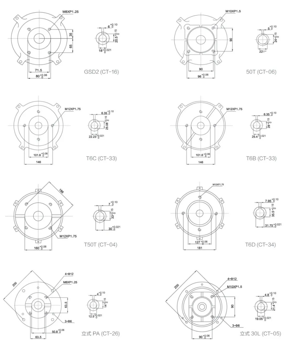 Matching dimensions of oil-pressure special motors with various oil pumps
