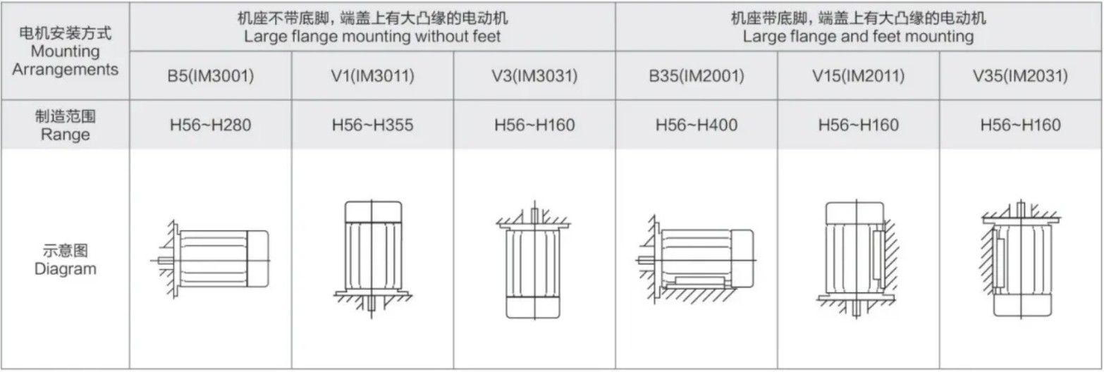 国际电工委员会IEC60034-7标准规定的电机安装方式