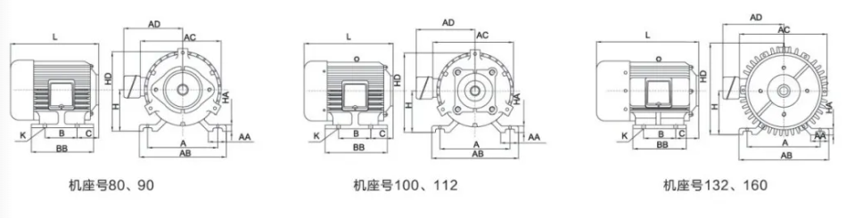 相数 | 图号 | A | AA | AB | AC | AD | B | BB | C | H | HA | HD | K | L | 轴端 |
